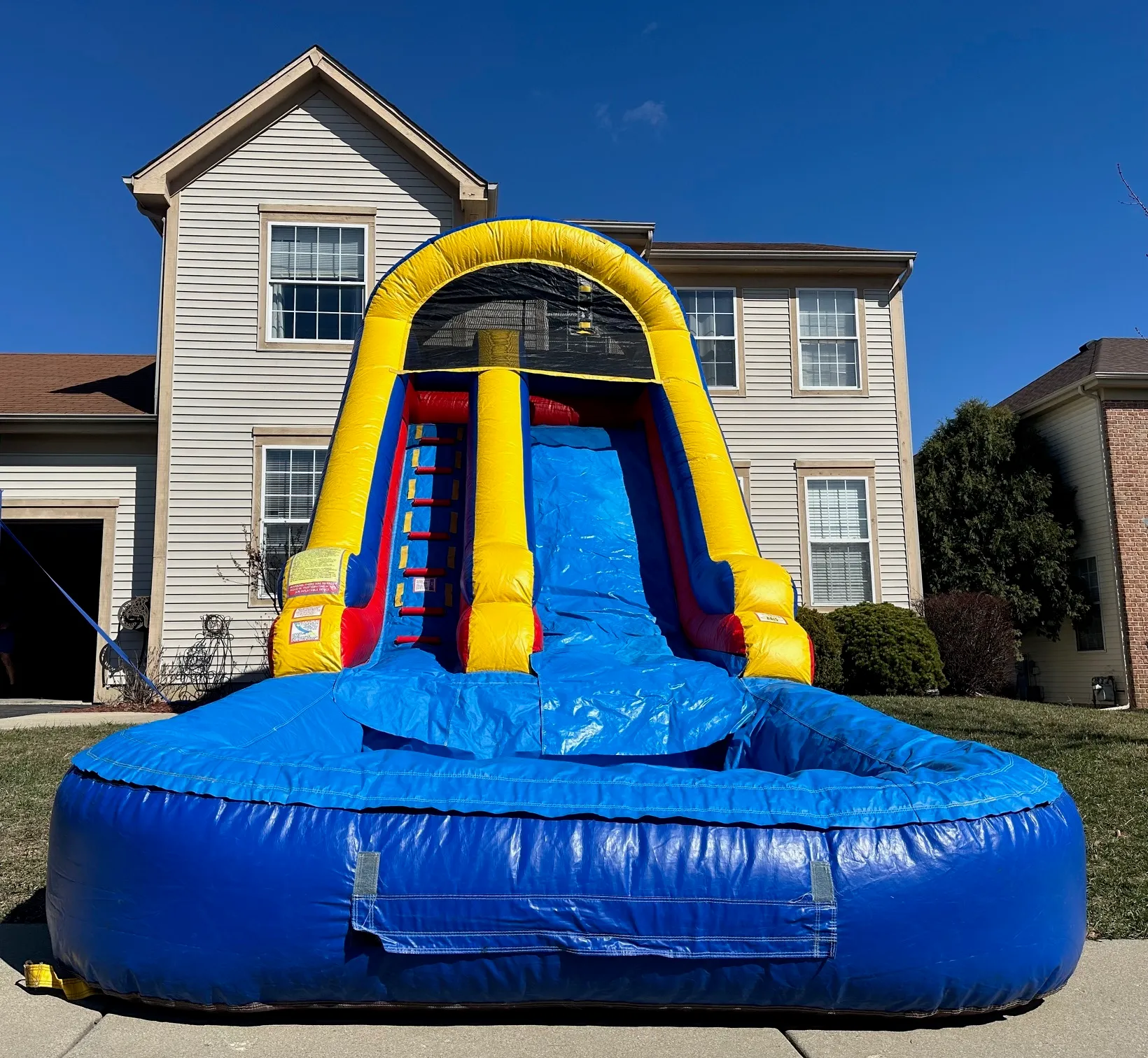 Unleash the ultimate backyard adventure with our 13FT Super Soaker Slide! Perfect for birthdays, family gatherings, or just a sunny weekend, this inflatable water slide is designed to bring endless joy and excitement to kids and adults alike. Standing an impressive 13 feet tall, this vibrant slide promises a thrilling ride from top to bottom. Crafted with durable, puncture-resistant material, it ensures safety and longevity, making it a reliable centerpiece for any outdoor event. The slide features a built-in water sprayer, keeping the surface slippery and fun, while the splash pool at the base guarantees a refreshing landing every time. Transform your backyard into a water wonderland and create unforgettable memories with the 13FT Super Soaker Slide. Whether you're hosting a party or simply looking to beat the heat, this rental is your ticket to hours of laughter and fun. Book now and dive into a world of aquatic adventure!